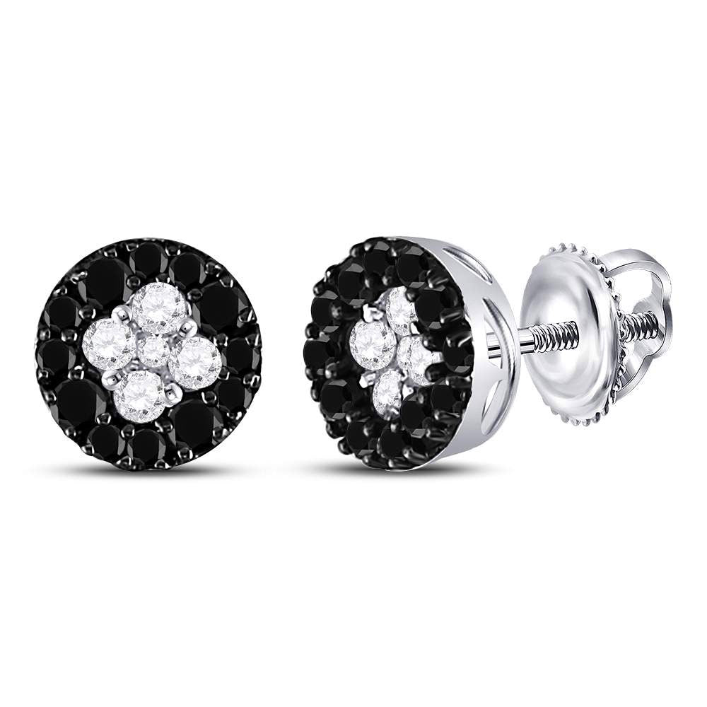10kt White Gold Womens Round Black Color Enhanced Diamond Cluster Earrings 1/3 Cttw