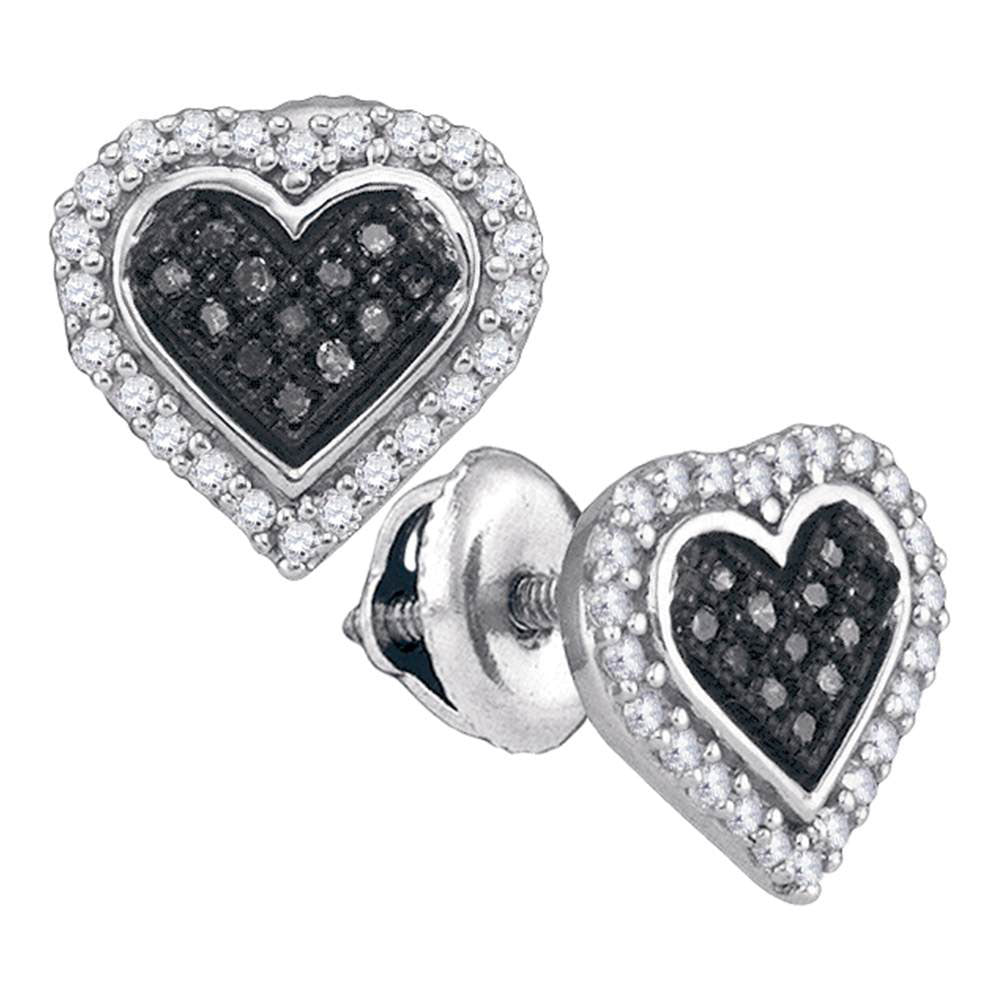 10kt White Gold Womens Round Black Color Enhanced Diamond Heart Earrings 1/4 Cttw