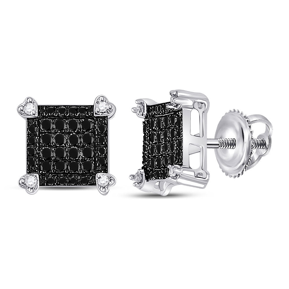 10kt White Gold Womens Round Black Color Enhanced Diamond Square Cluster Earrings 1/4 Cttw