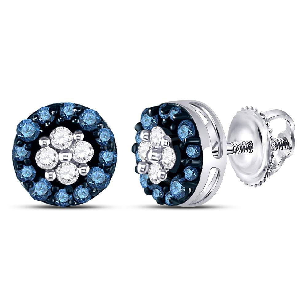 10kt White Gold Womens Round Blue Color Enhanced Diamond Cluster Earrings 1/3 Cttw