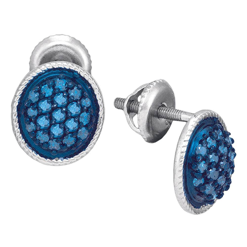 10kt White Gold Womens Round Blue Color Enhanced Diamond Oval Cluster Earrings 1/2 Cttw