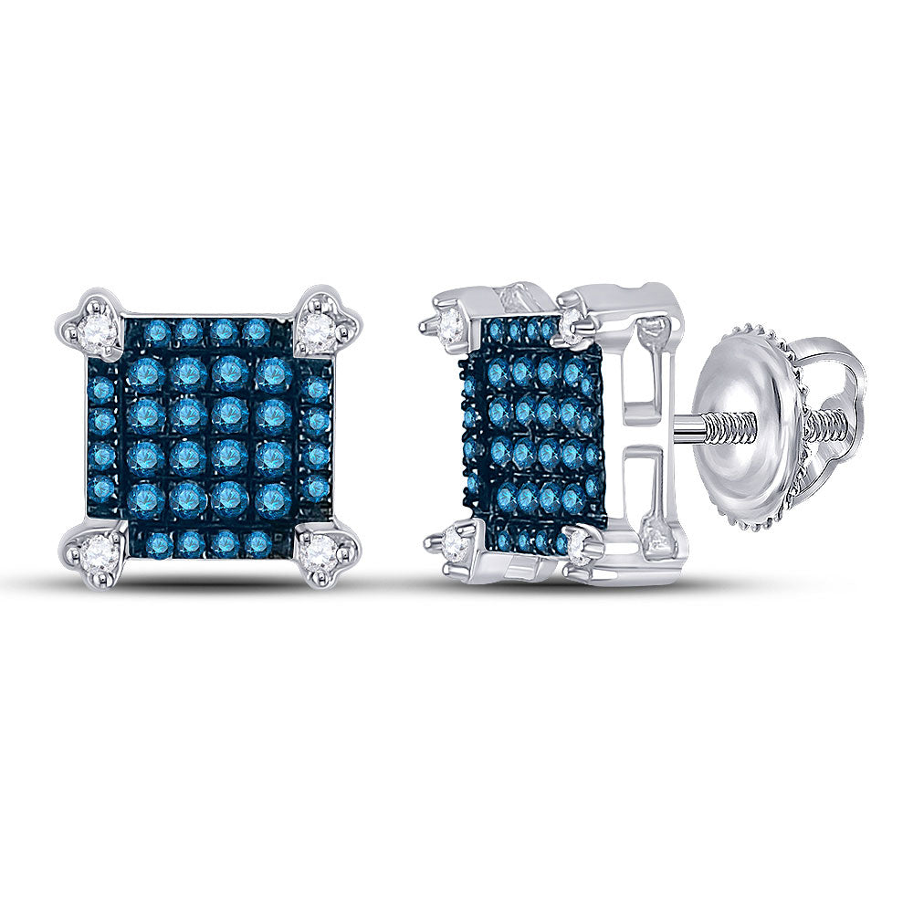10kt White Gold Womens Round Blue Color Enhanced Diamond Square Cluster Earrings 1/4 Cttw