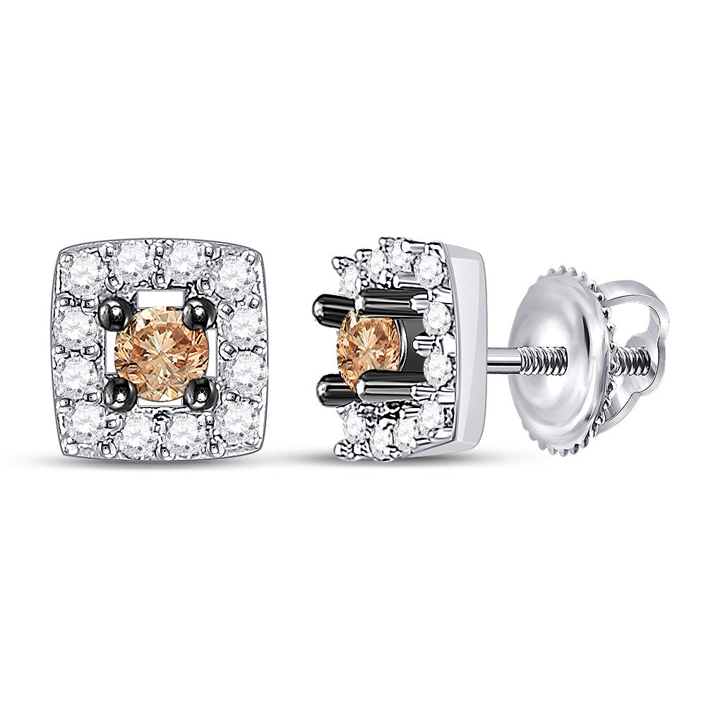 10kt White Gold Womens Round Brown Diamond Square Earrings 1/4 Cttw
