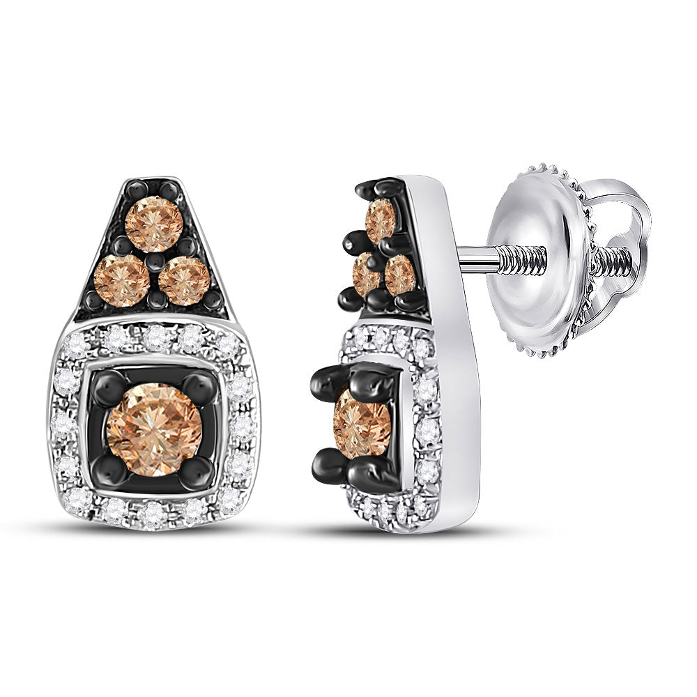10kt White Gold Womens Round Brown Diamond Square Earrings 3/8 Cttw