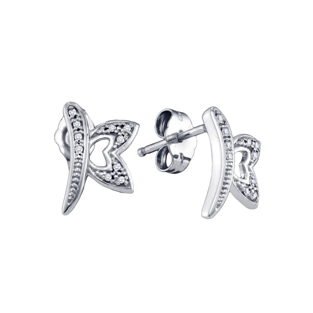 10kt White Gold Womens Round Diamond Butterfly Bug Earrings 1/20 Cttw