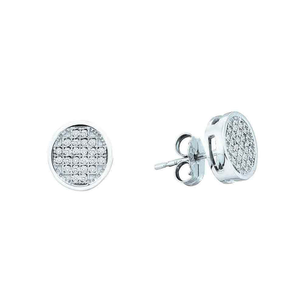 10kt White Gold Womens Round Diamond Circle Cluster Earrings 1/10 Cttw