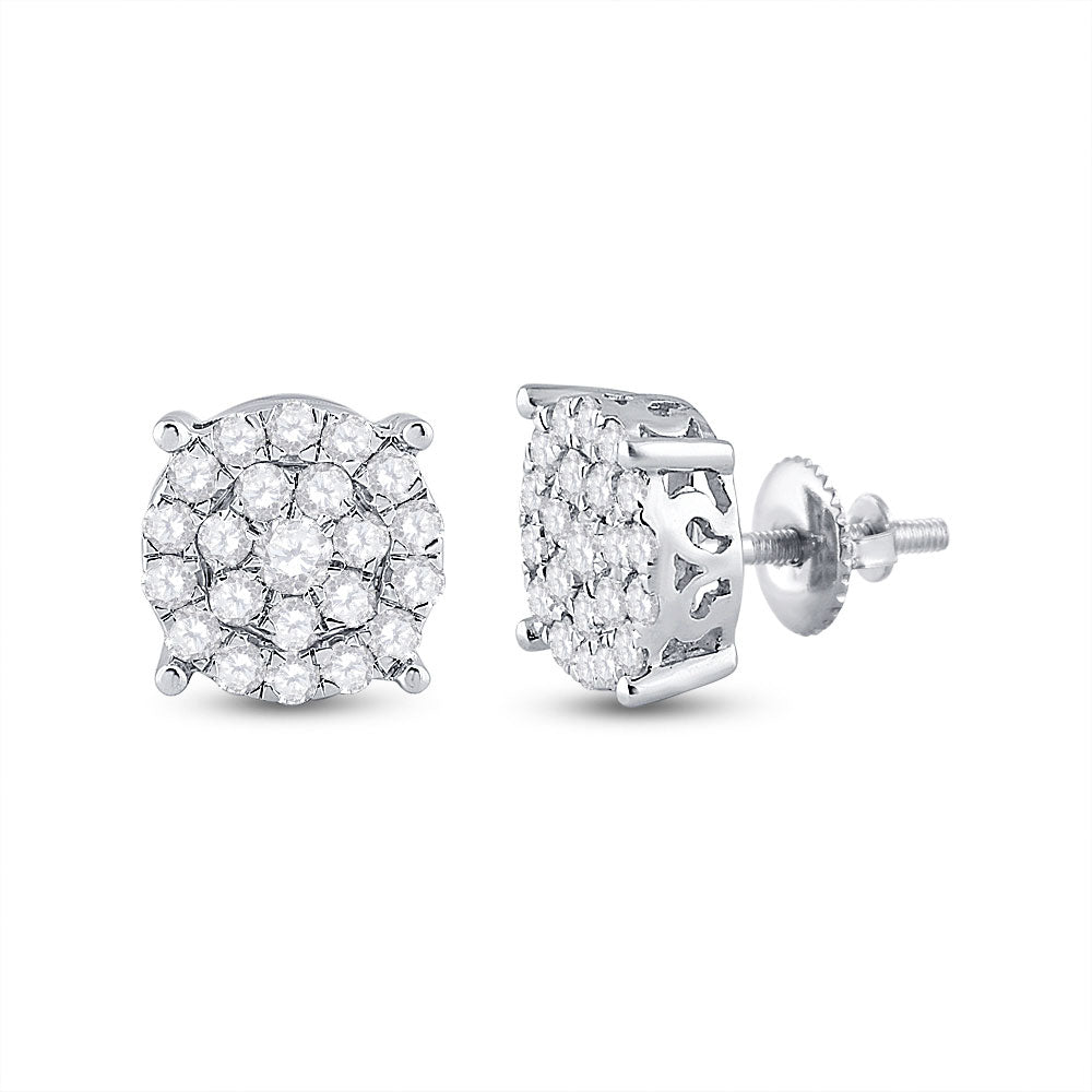 10kt White Gold Womens Round Diamond Cluster Earrings 1-1/2 Cttw