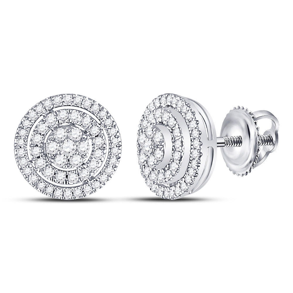 10kt White Gold Womens Round Diamond Concentric Circle Cluster Earrings 1/2 Cttw