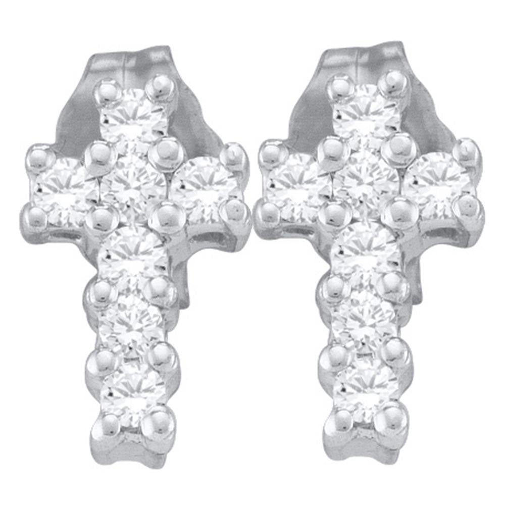 10kt White Gold Womens Round Diamond Cross Earrings 1/4 Cttw