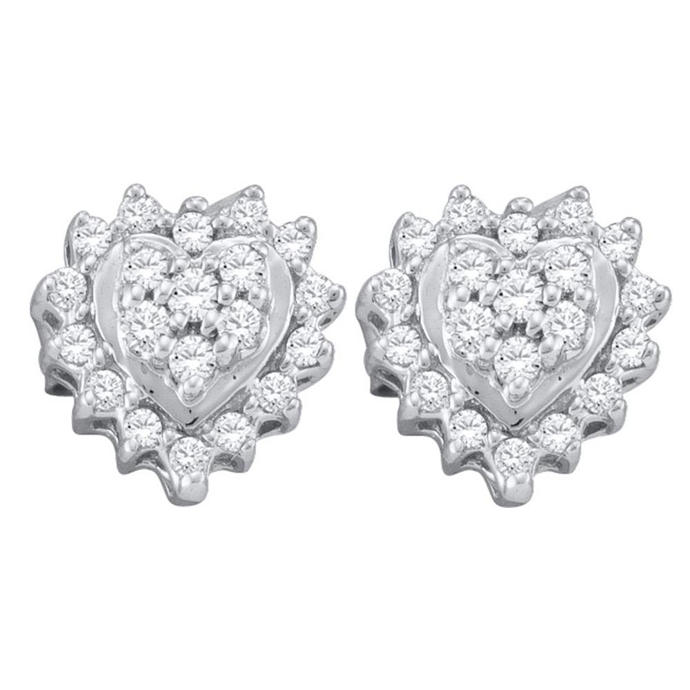 10kt White Gold Womens Round Diamond Heart Cluster Earrings 1/4 Cttw