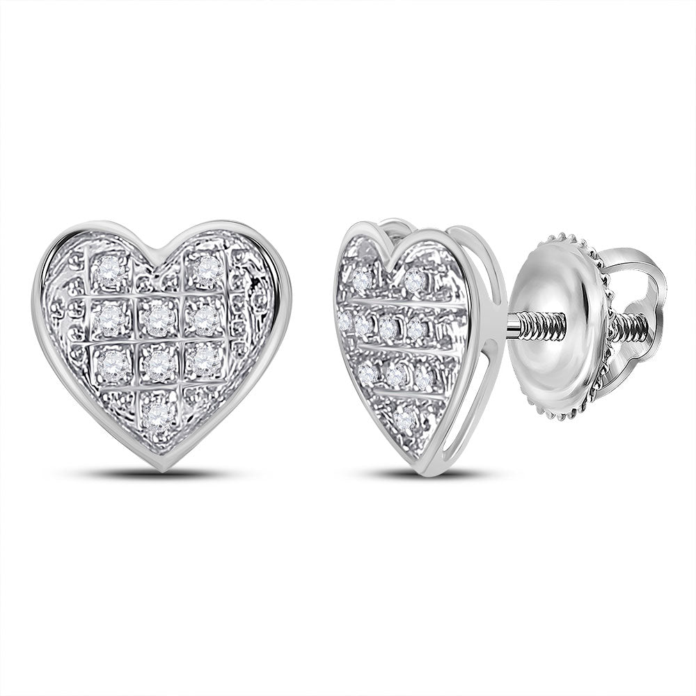 10kt White Gold Womens Round Diamond Heart Cluster Stud Earrings 1/20 Cttw