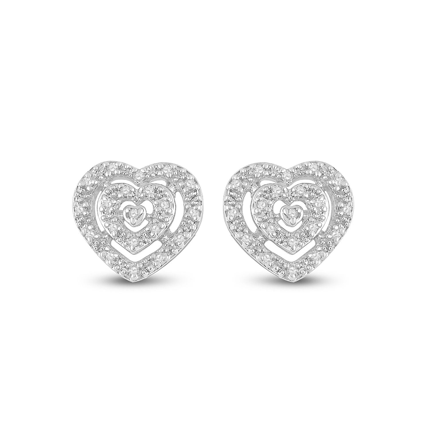 10kt White Gold Womens Round Diamond Heart Earrings 1/12 Cttw