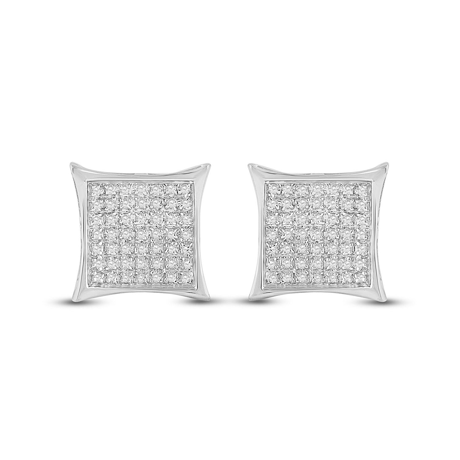 10kt White Gold Womens Round Diamond Kite Square Earrings 1/3 Cttw