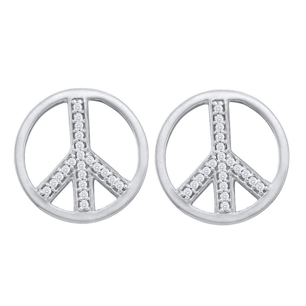 10kt White Gold Womens Round Diamond Peace Sign Circle Earrings 1/6 Cttw