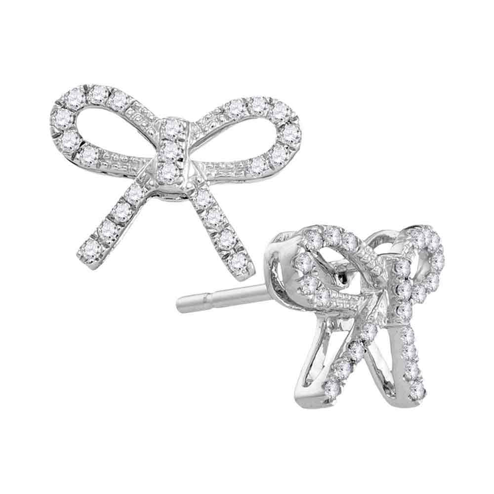 10kt White Gold Womens Round Diamond Ribbon Bow Fashion Earrings 1/5 Cttw