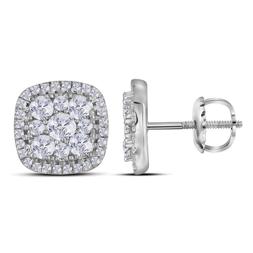 10kt White Gold Womens Round Diamond Square Cluster Earrings 1 Cttw