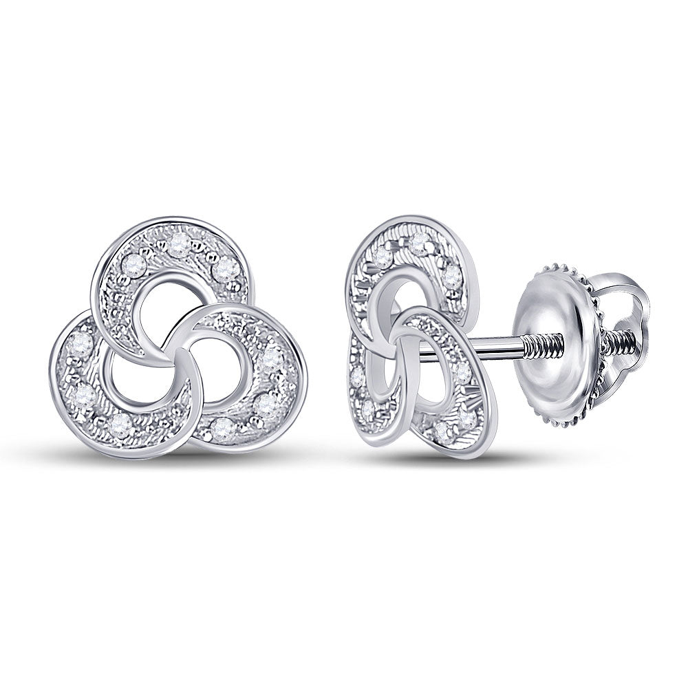 10kt White Gold Womens Round Diamond Trinity Fashion Earrings 1/20 Cttw