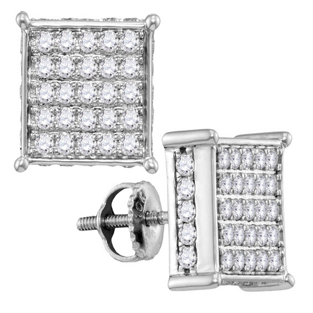 10kt White Gold Womens Round Pave-set Diamond Square Cluster Earrings 1 Cttw
