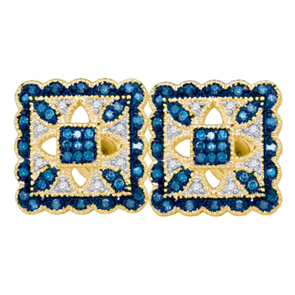 10kt Yellow Gold Womens Round Blue Color Enhanced Diamond Square Earrings 1/5 Cttw