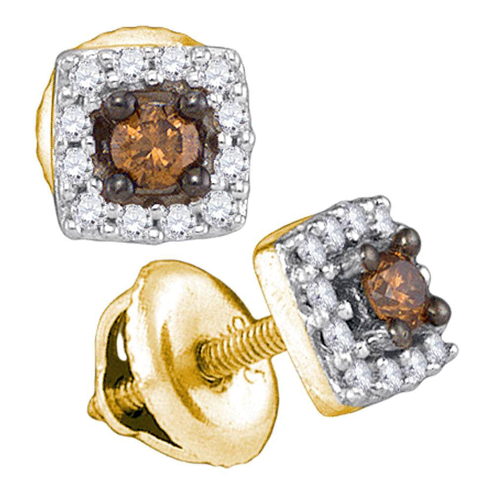 10kt Yellow Gold Womens Round Brown Diamond Square Earrings 1/4 Cttw