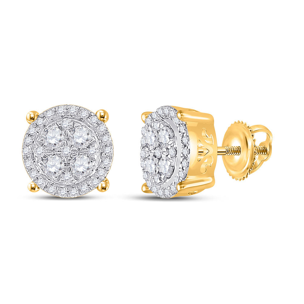 10kt Yellow Gold Womens Round Diamond Cluster Earrings 1/2 Cttw