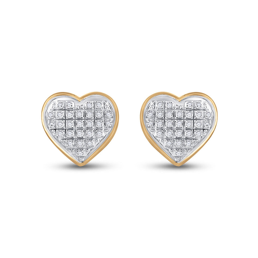 10kt Yellow Gold Womens Round Diamond Heart Cluster Earrings 1/6 Cttw
