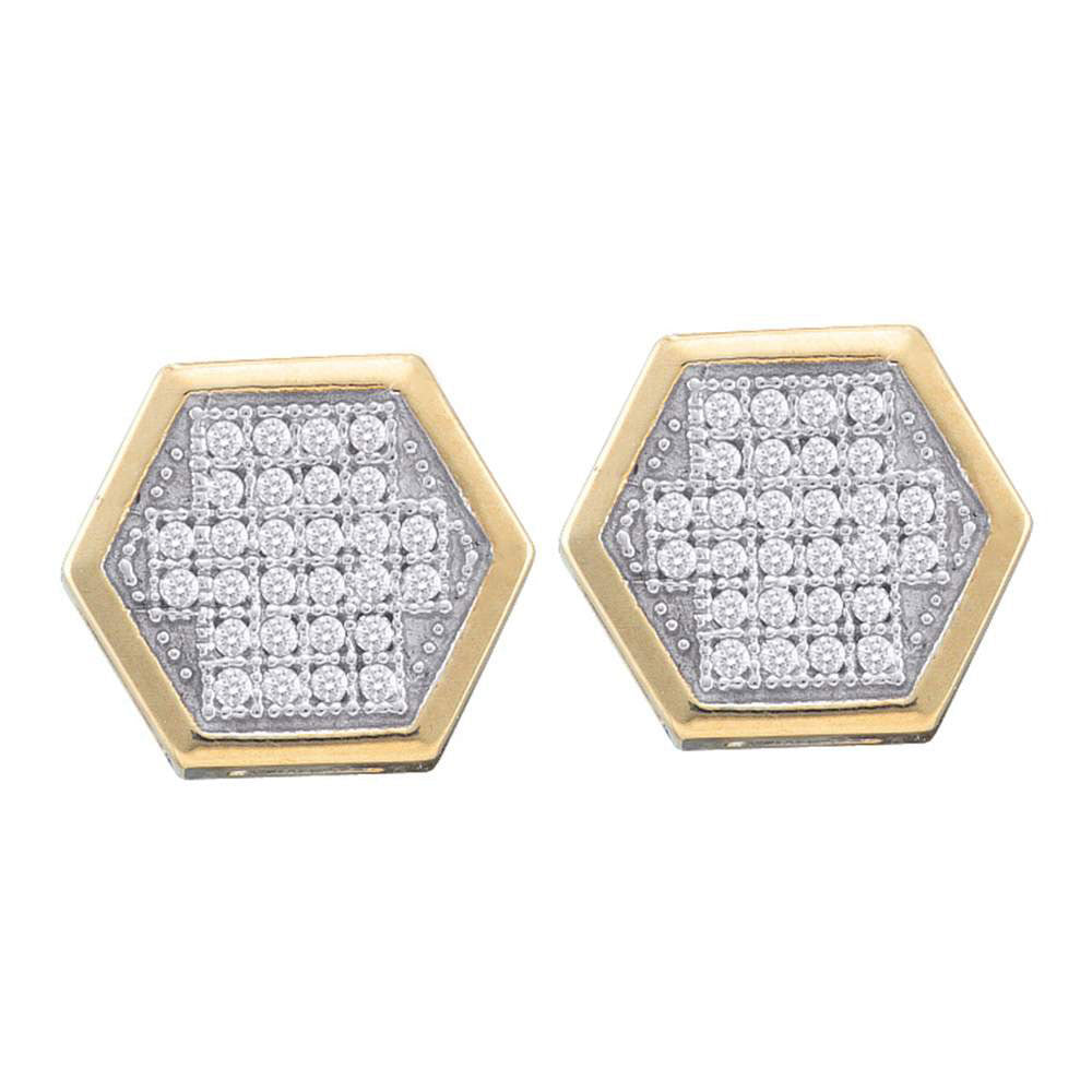10kt Yellow Gold Womens Round Diamond Hexagon Cluster Earrings 1/5 Cttw