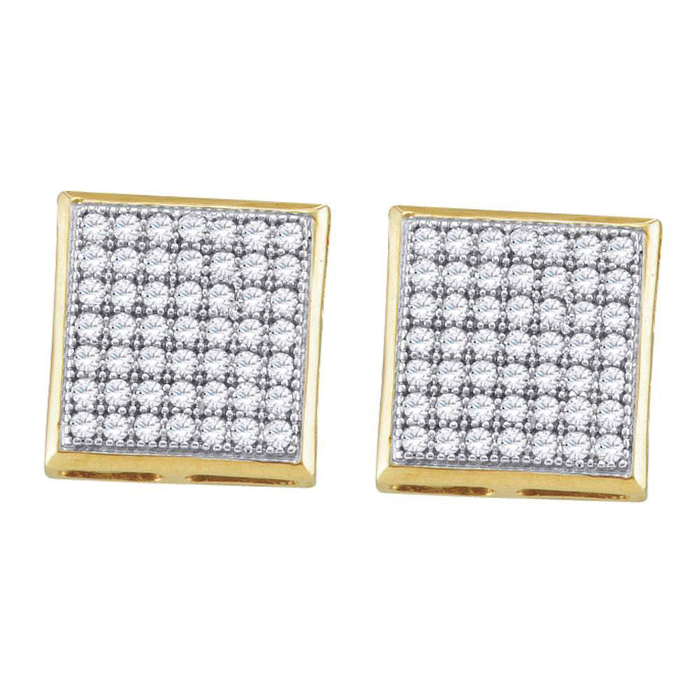 10kt Yellow Gold Womens Round Diamond Square Cluster Earrings 1/3 Cttw