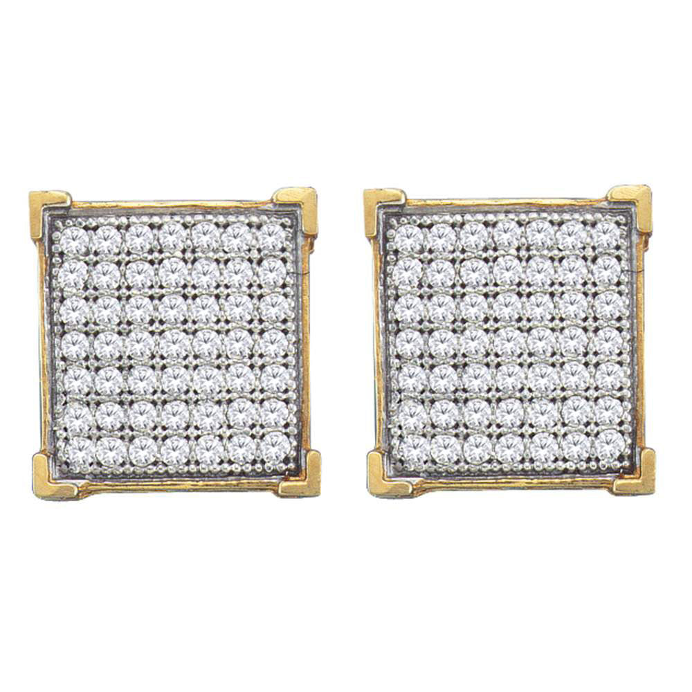 10kt Yellow Gold Womens Round Diamond Square Cluster Stud Earrings 1/3 Cttw