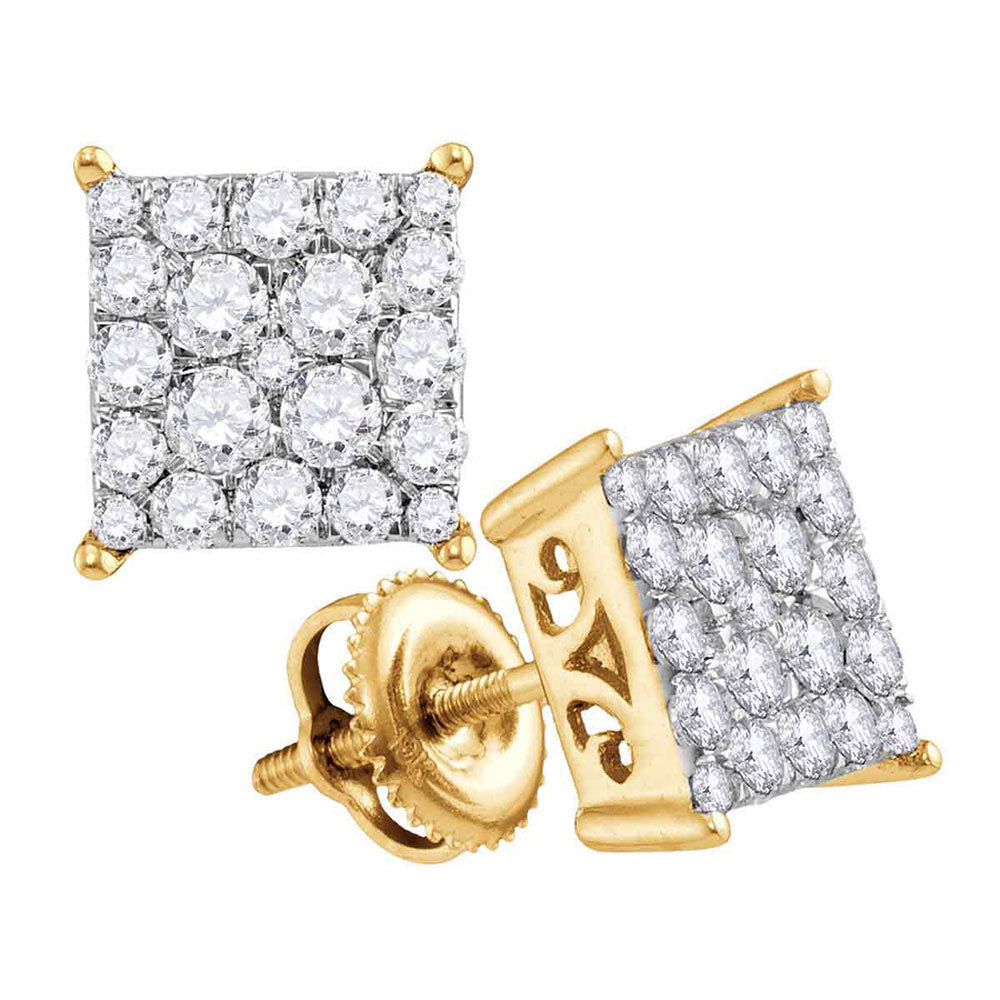 10kt Yellow Gold Womens Round Diamond Square Cluster Stud Earrings 1 Cttw