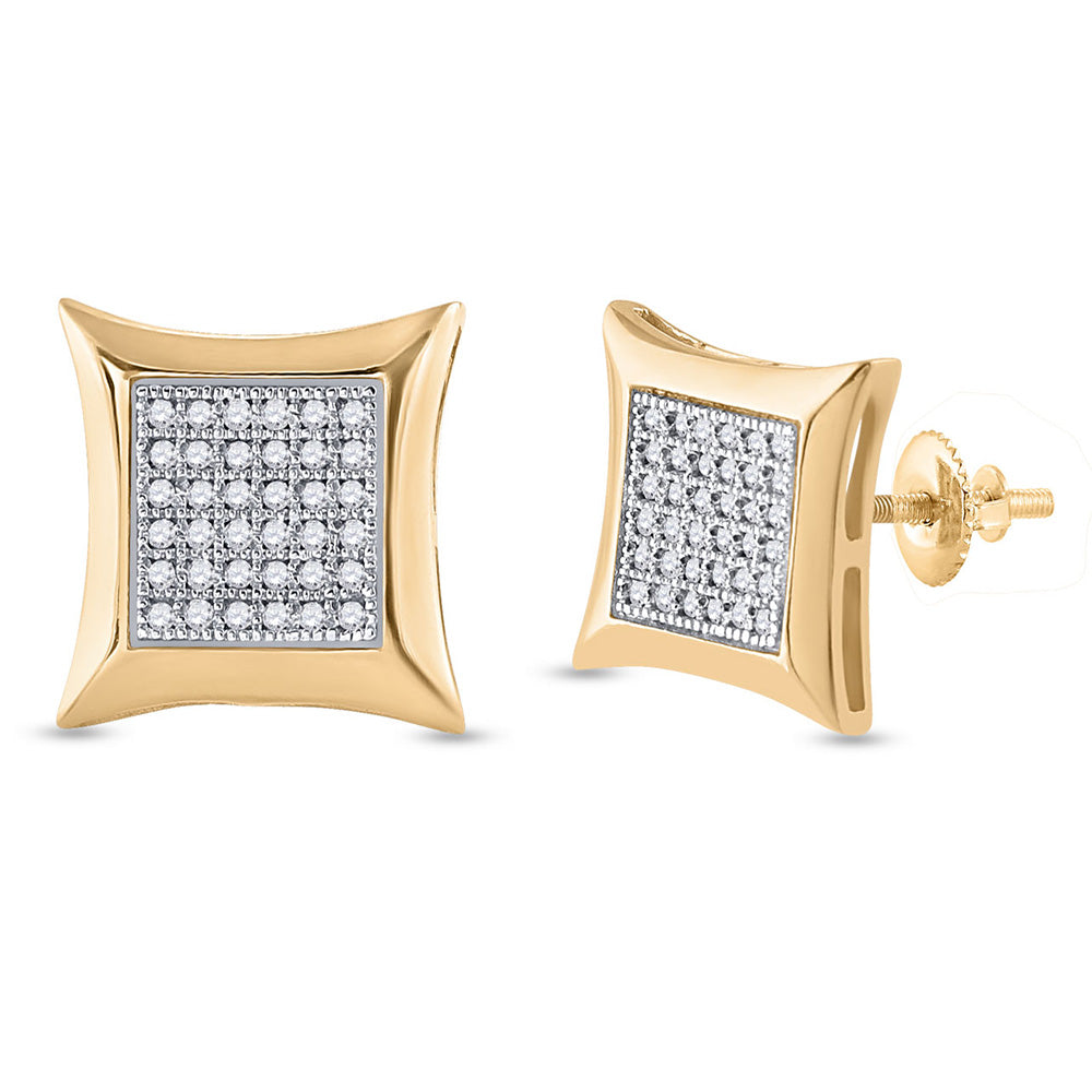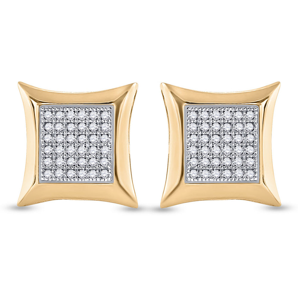 10kt Yellow Gold Womens Round Diamond Square Kite Cluster Earrings 1/5 Cttw