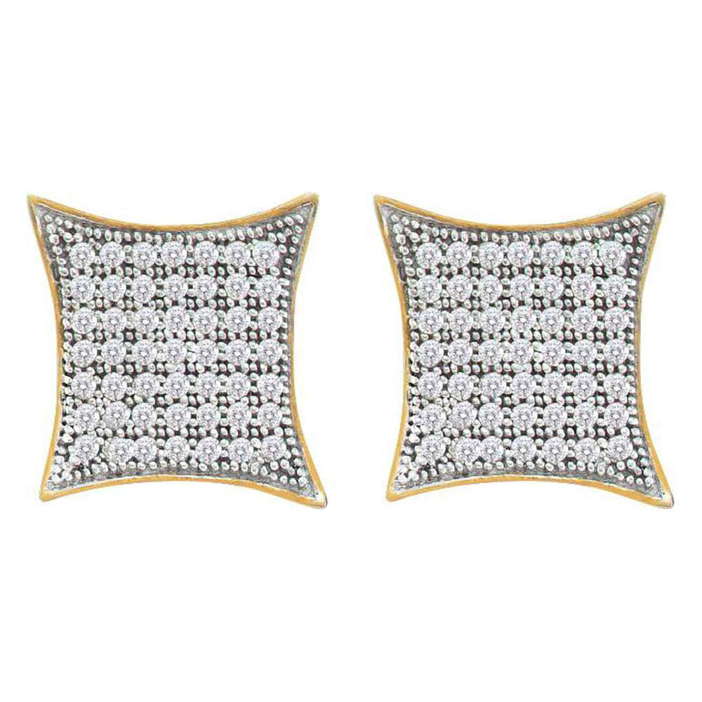 10kt Yellow Gold Womens Round Diamond Square Kite Cluster Earrings 3/8 Cttw