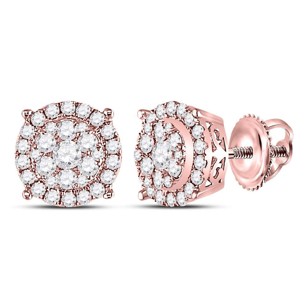 14kt Rose Gold Womens Round Diamond Circle Cluster Earrings 1/2 Cttw