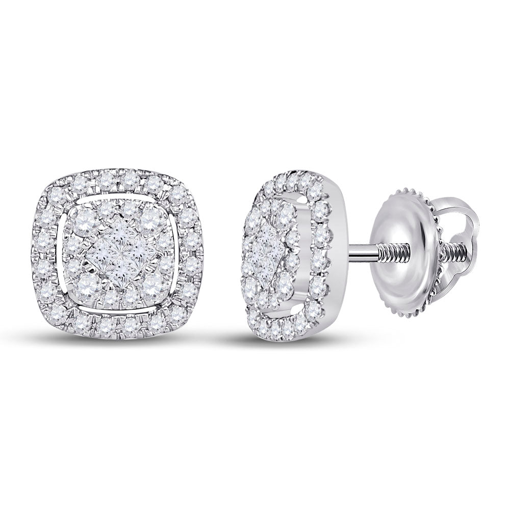 14kt White Gold Womens Princess Diamond Cushion Cluster Earrings 1/2 Cttw