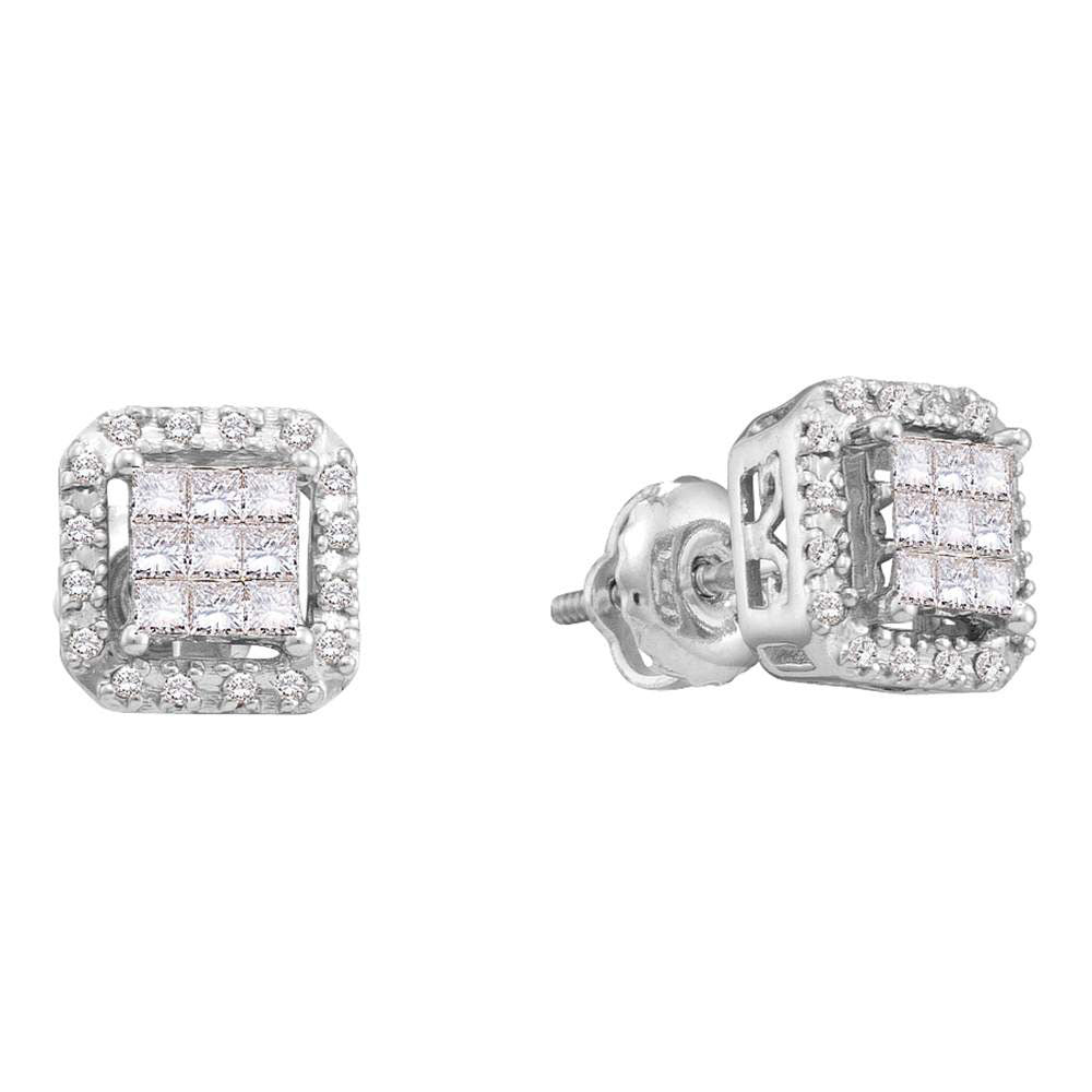 14kt White Gold Womens Princess Diamond Square Frame Cluster Earrings 1/3 Cttw