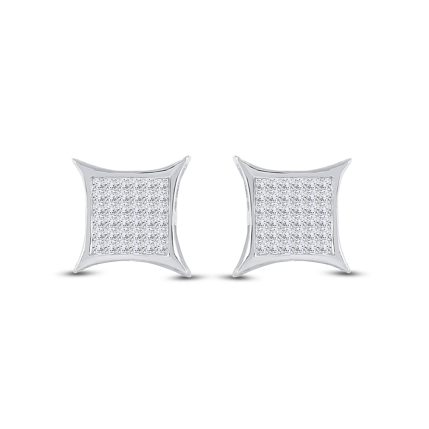 14kt White Gold Womens Princess Diamond Square Kite Stud Earrings 1/2 Cttw