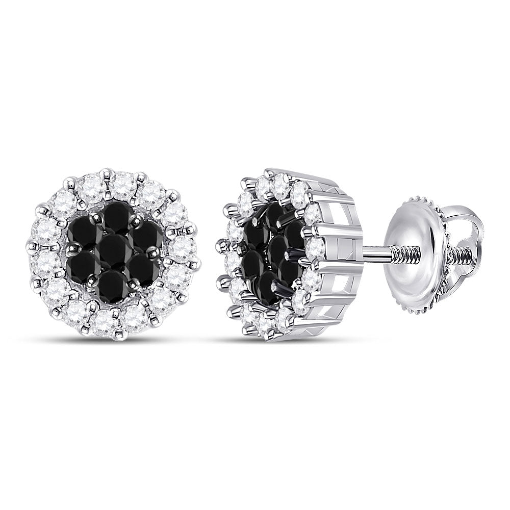 14kt White Gold Womens Round Black Color Enhanced Diamond Flower Cluster Earrings 1 Cttw