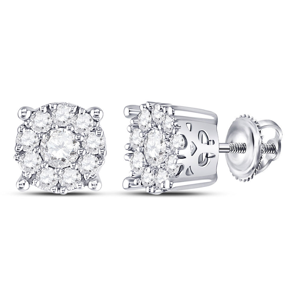 14kt White Gold Womens Round Diamond Cluster Stud Earrings 1 Cttw