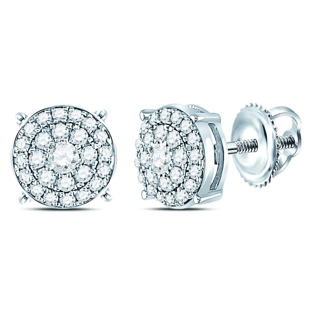 14kt White Gold Womens Round Diamond Concentric Circle Cluster Earrings 1/4 Cttw