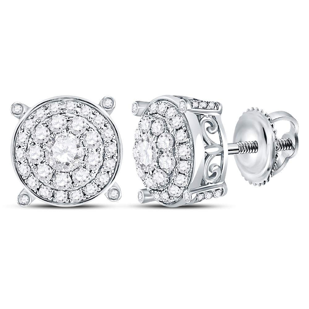 14kt White Gold Womens Round Diamond Concentric Circle Cluster Earrings 1 Cttw