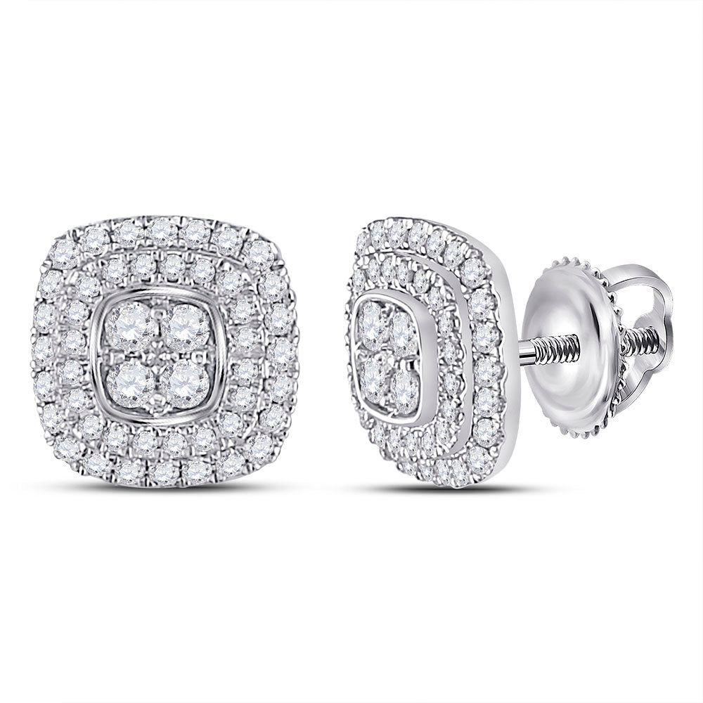 14kt White Gold Womens Round Diamond Cushion Cluster Earrings 1/2 Cttw