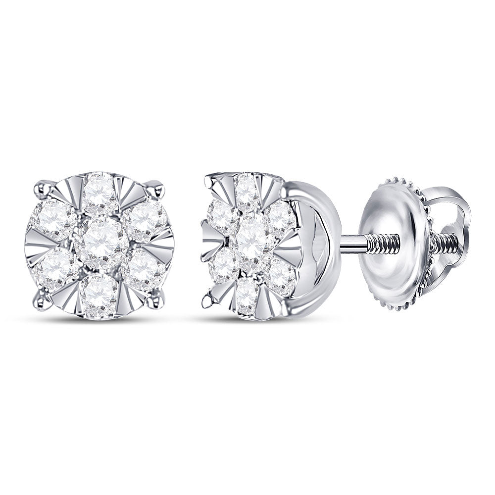 14kt White Gold Womens Round Diamond Fashion Cluster Earrings 1/2 Cttw