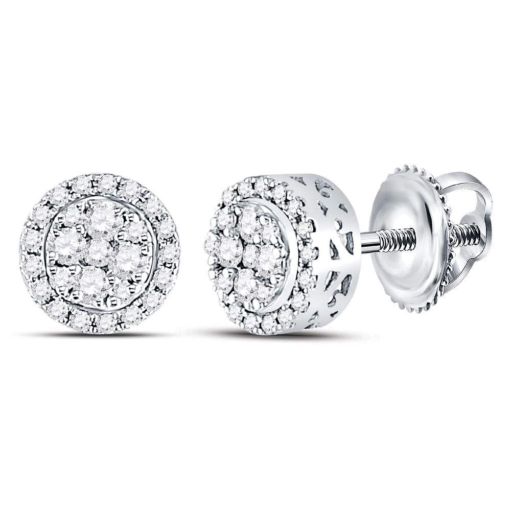 14kt White Gold Womens Round Diamond Flower Halo Cluster Earrings 1/4 Cttw