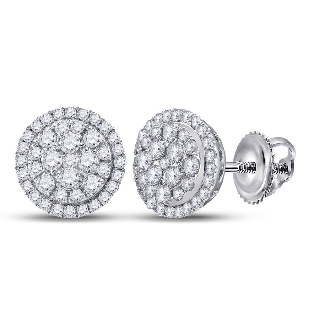 14kt White Gold Womens Round Diamond Halo Cluster Earrings 1/2 Cttw
