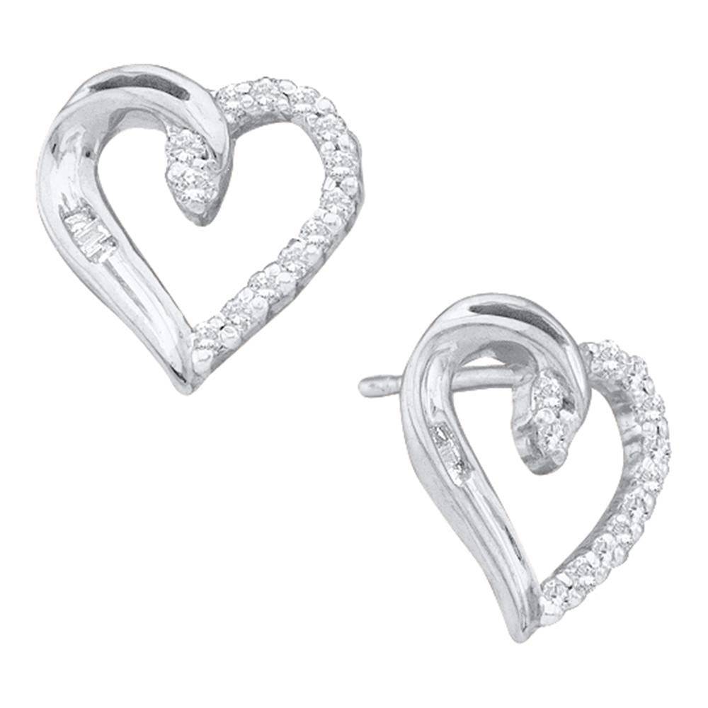 14kt White Gold Womens Round Diamond Heart Earrings 1/6 Cttw