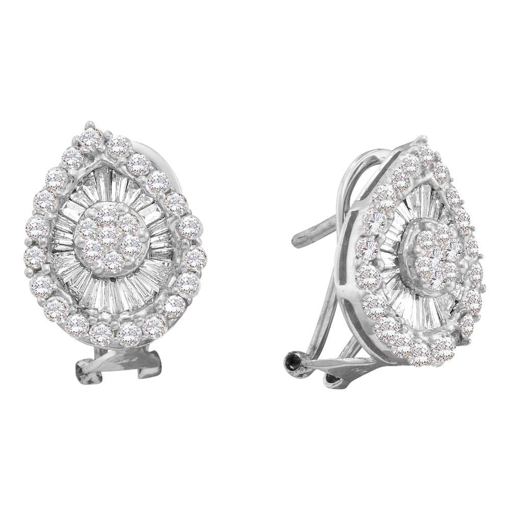 14kt White Gold Womens Round Diamond Oval Cluster Earrings 1-1/4 Cttw