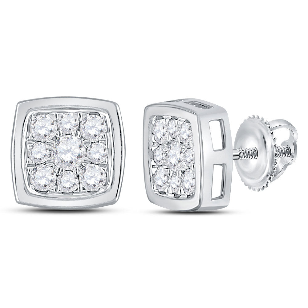14kt White Gold Womens Round Diamond Square Cluster Stud Earrings 1/2 Cttw