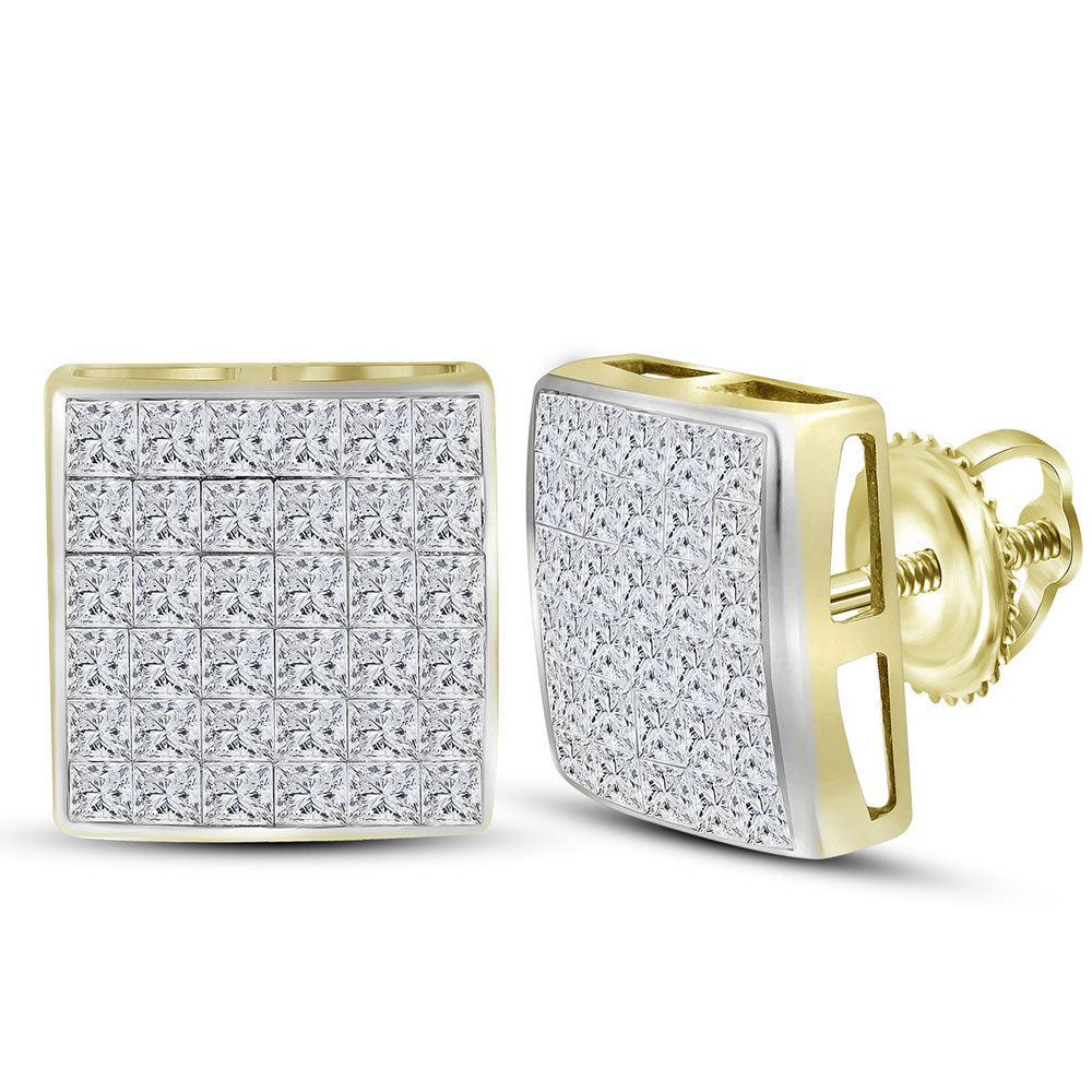 14kt Yellow Gold Womens Princess Diamond Square Cluster Earrings 2 Cttw