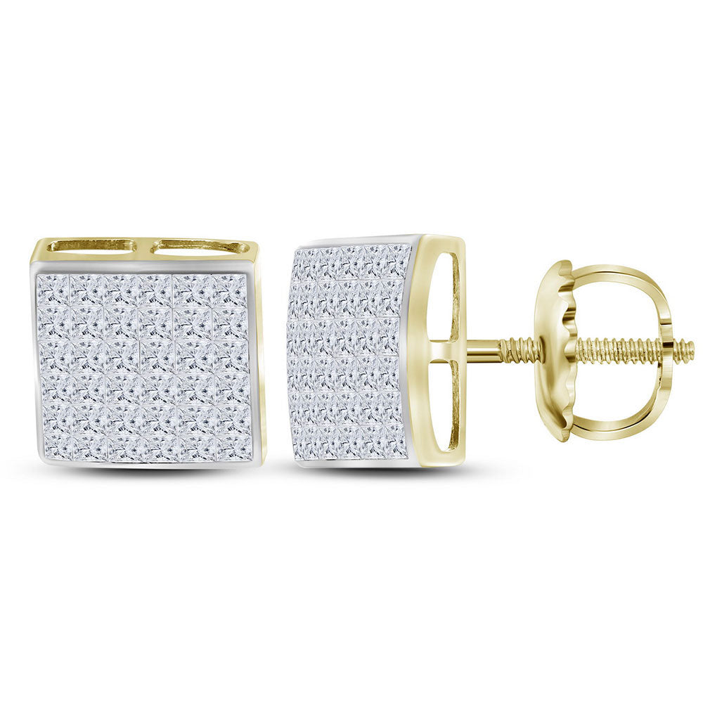 14kt Yellow Gold Womens Princess Diamond Square Earrings 1-1/2 Cttw
