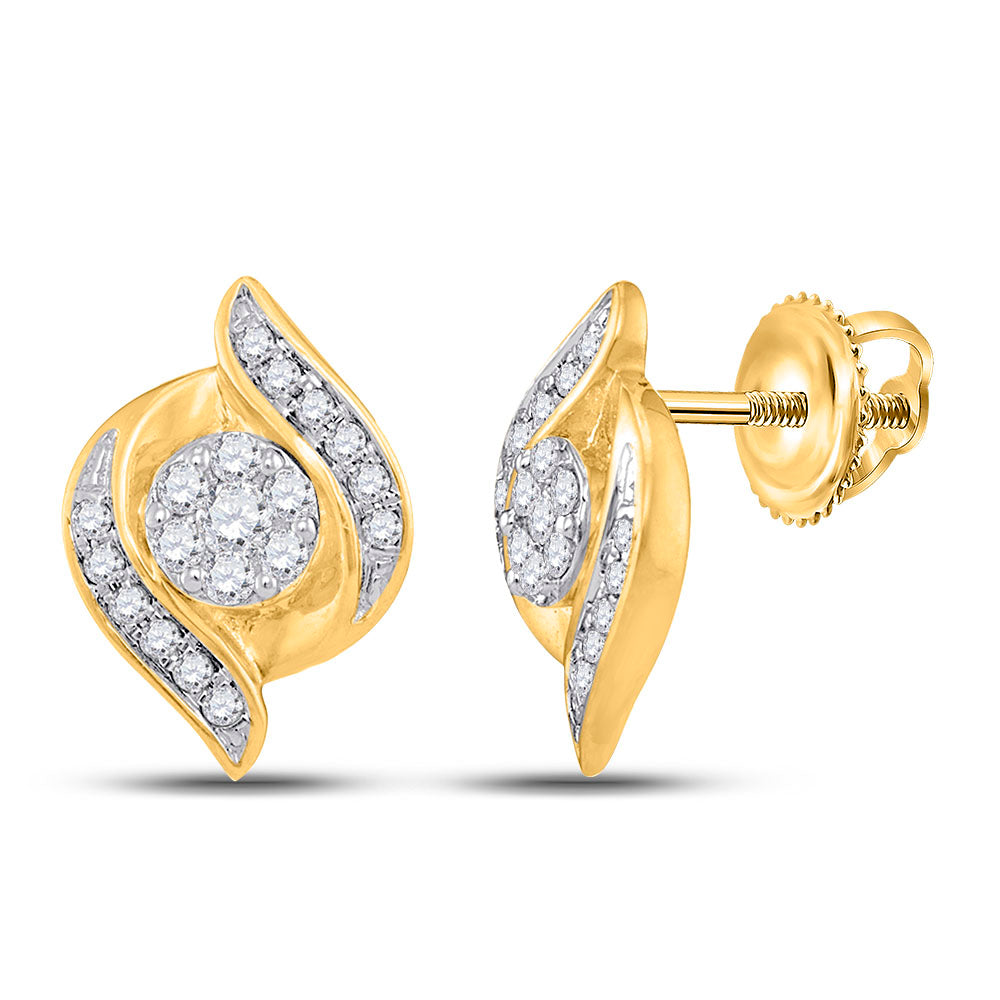 14kt Yellow Gold Womens Round Diamond Flower Cluster Earrings 1/4 Cttw
